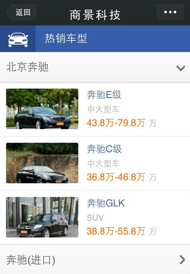 微汽車有汽車銷售管理、預(yù)約保養(yǎng)、預(yù)約試駕、保險(xiǎn)計(jì)算、車貸計(jì)算、車型比較、違章查詢、360度全景看車、車主關(guān)懷等功能,整個(gè)過(guò)程非常便捷,省時(shí)省力,快速便捷的實(shí)現(xiàn)了商家的銷售管理與預(yù)約過(guò)程,同時(shí)也實(shí)現(xiàn)了客戶無(wú)需進(jìn)入4s店就能進(jìn)行預(yù)約保養(yǎng)和試駕的功能。
