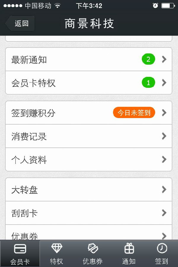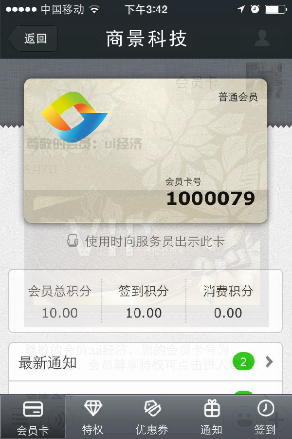 微信會員卡通過在微信內(nèi)植入會員卡,基于全國4億微信用戶,幫助企業(yè)建立集品牌推廣、會員管理、營銷活動、統(tǒng)計報表于一體的微信會員管理平臺。清晰記錄企業(yè)用戶的消費(fèi)行為并進(jìn)行數(shù)據(jù)分析;還可根據(jù)用戶特征進(jìn)行精細(xì)分類,從而實現(xiàn)各種模式的精準(zhǔn)營銷。