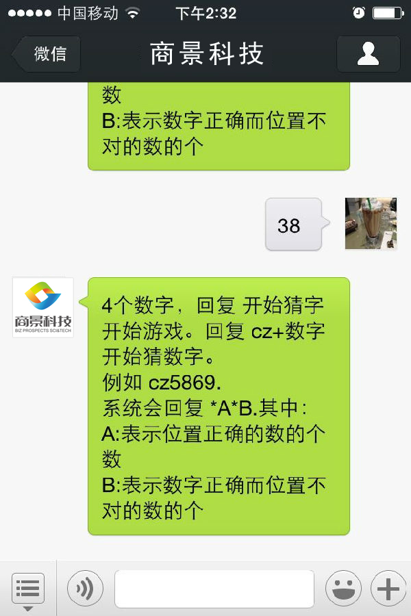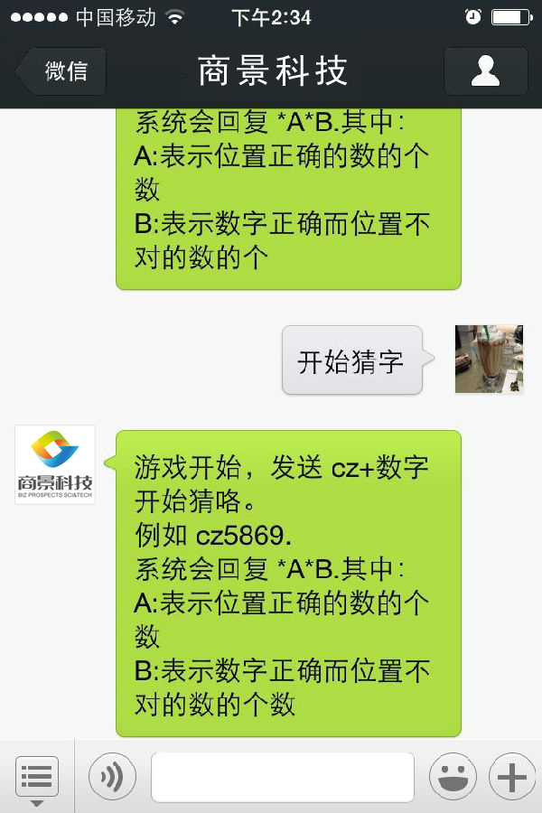 4個(gè)數(shù)字,回復(fù) 開(kāi)始猜字 開(kāi)始游戲;貜(fù) cz+數(shù)字開(kāi)始玩游戲。